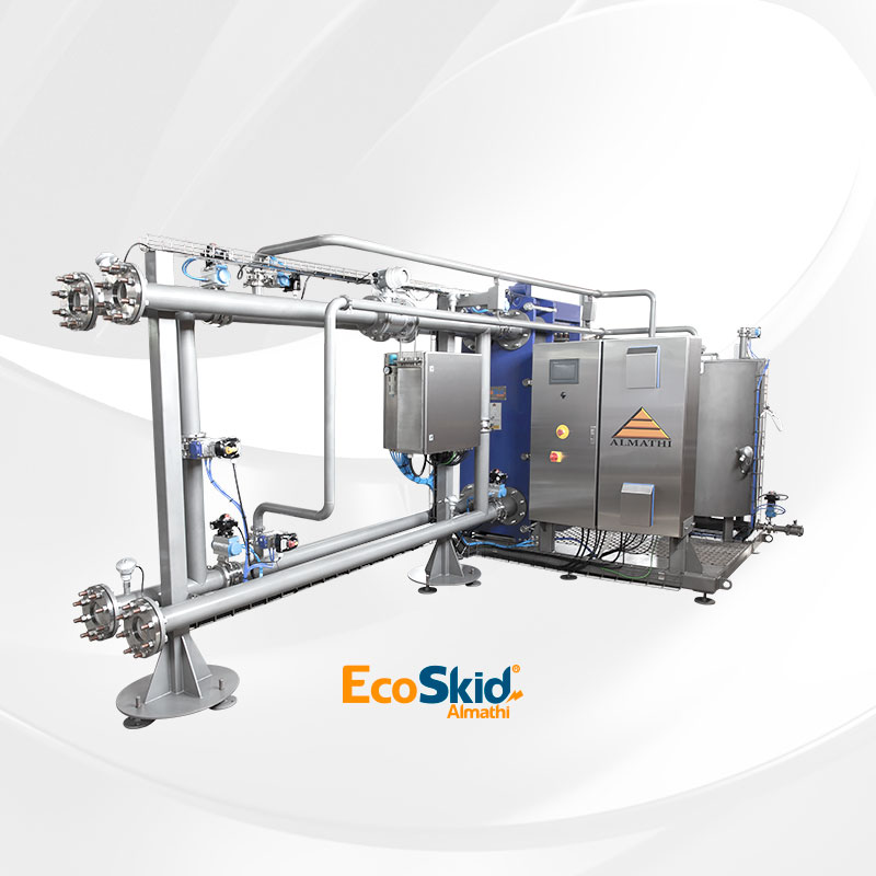 O EcoSkid é um equipamento com tecnologia nacional, patenteada e registrada no INPI, desenvolvida pela equipe técnica da Almathi. O sistema aproveita a energia térmica desperdiçada no processo de resfriamento de carcaças de frango, reduzindo a temperatura da água em até 15 °C.